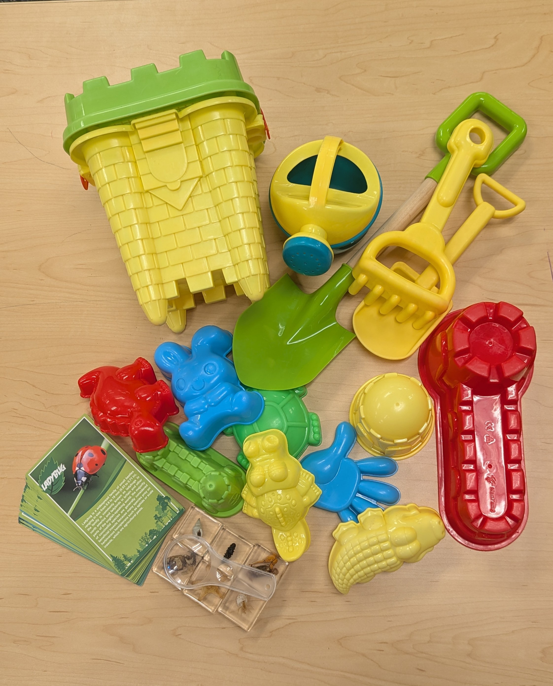 Enjoy the beach with this set which includes a variety of sand toy molds, a watering can, sand sifter, rake, shovels, a backpack explorer beach walk card set and a marine life specimen set!