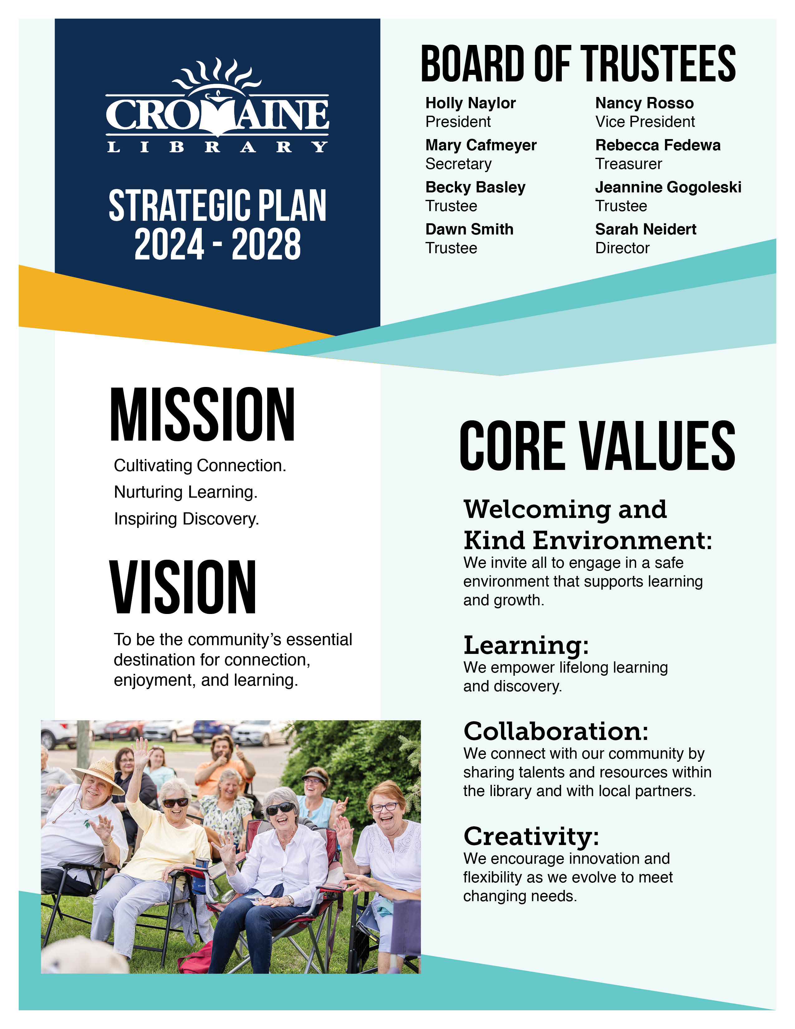 This strategic plan was adopted by the Library Trustees at the February 2024 board meeting.