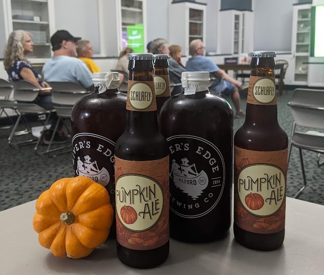 We sampled No Spice from River's Edge Brewing Company, a pumpkin beer that is earthy, malty, and spice-free at 5.5% alcohol by volume (ABV). This is a more traditional recipe than many pumpkin beers that we see today.