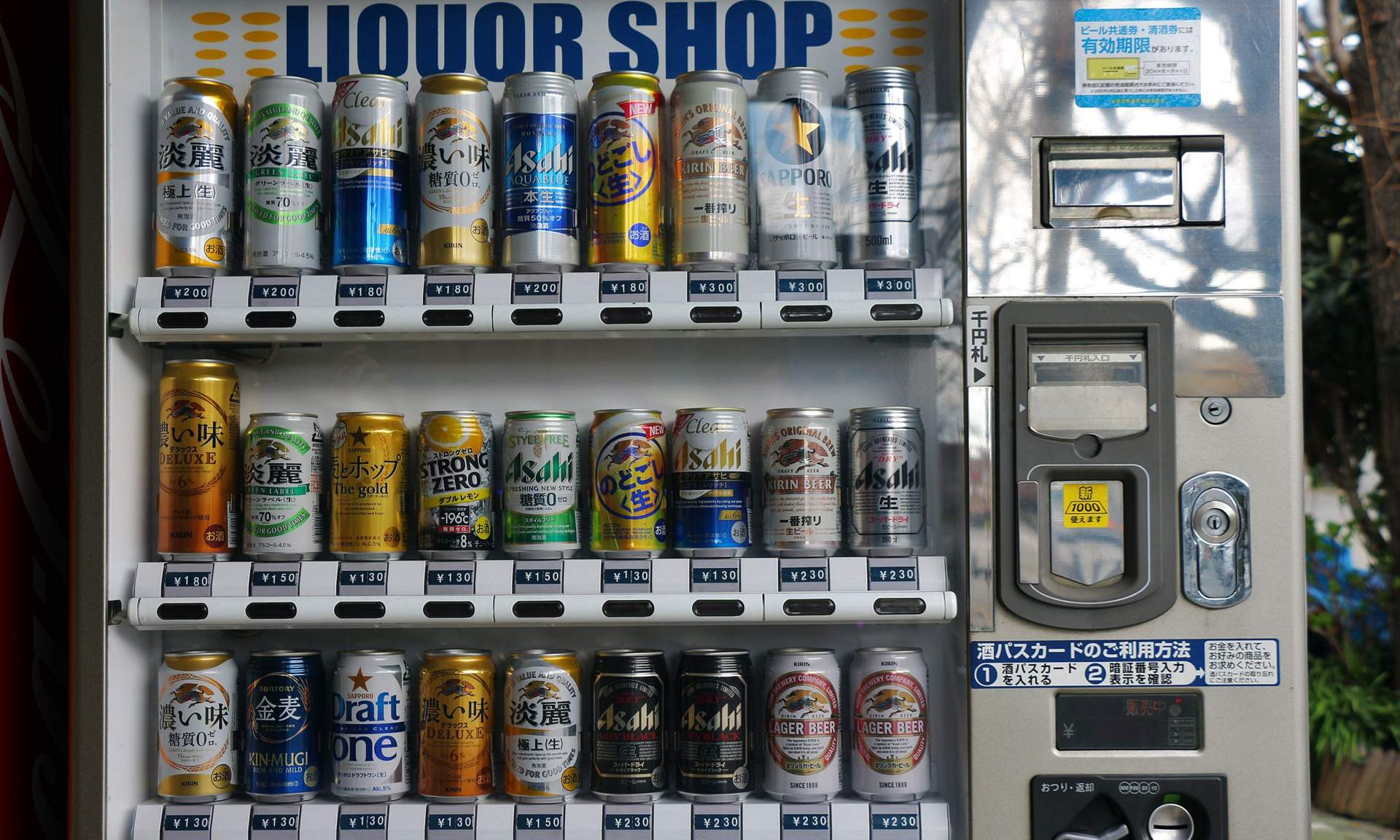 Drinking culture is relatively popular in Japan, especially among young adults and the working class. Beer is consumed more than sake or whiskey in Japan, and can be purchased at bars or restaurants, convenient stores, and even vending machines and kiosks. There is a social honor system associated with vending machines and beer kiosks, because many locations do not verify that customers are drinking age, and many underage people are strict non-drinkers.