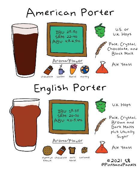 As porters and stouts gained popularity in Europe, they were also commonly brewed in eighteenth-century New England, mirroring the London fashion. By the twentieth century, Fritz Maytag (who founded Anchor Brewing in 1972) was fascinated by traditional European brewing styles. He pursued this style in the 1980s, and at the same time many homebrewers enjoyed brewing English styles, like porters, as well. In the twenty-first century, porters became the blank canvas with which brewers could test out different adjuncts. Smoked porters became popular as a way to accentuate the smoky flavors of this dark beer style, and coffee, chocolate, stone fruit, nuts, berries, dessert foods, candy, and peanut butter have all been added to porters as a way to try out new flavors and aromas. Porter beers have changed over time as brewers continue to experiment with the style, and beer lovers everywhere still love the comforting, warming flavors and aromas of porters.