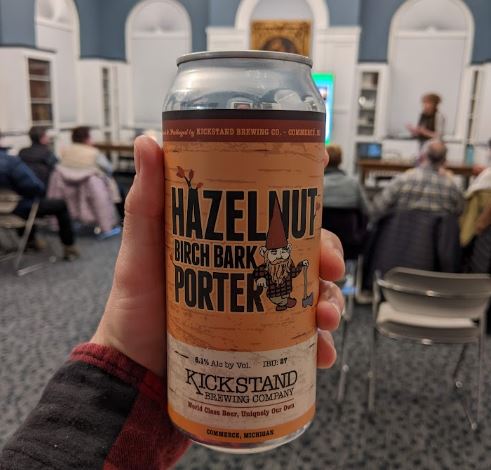 We sampled Hazelnut Birch Bark from Kickstand Brewing Company in Commerce, which is a fun porter with a hint of hazelnut sweetness.