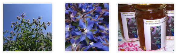 The biggest plant in this garden features large, light green leaves and an explosion of purple, star-shaped flowers. This beautiful plant is called borage! Borage is a dynamic accumulator, meaning that it mines nutrients from the soil to store in its leaves. Composting or mulching with borage leaves is a great way to return nutrients to the soil. Plus, the leaves and flowers of borage plants are edible, and add a light, cucumber-like flavor to teas, jellies, salads, and more. I highly recommend making borage jelly! This fun, simple jelly recipe is great with aged cheese and crackers, or served on cucumber tea sandwiches.