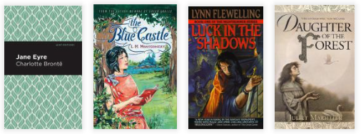 The Blue Castle by L.M. Montgomery-- I was just talking to Librarian Loni this morning about why I love this one-- It's written by the author of Anne of Green Gables, but it's the author's push, again, against the typical characters of their time. Like Jane, Valancy seizes her own happiness, but pushes the boundaries of her society and family even further, including associating with an unwed mother in small-town 19-teens or 20s Canada.