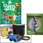 Wild Birds Unlimited adult birding kit. Includes binoculars, backpack, field guide, feeding guide, tips on where to go birding in Livingston county.