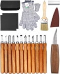 This set contains all the tools needed by a wood carving beginner. First use a all-purpose cutting knife to cut out the rough outline, and then use 12 detail knives with different shapes to carve out the details.